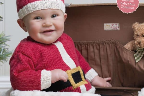 Get set for baby’s first Christmas with this adorable festive outfit – she’ll make the cutest little helper for Santa! Baby might only wear this outfit over Christmas but it is so sweet-and quick to knit-it’s worthit. The festive red jumper has white borders and a broad belt with a big gold buckle, just like Santa’s coat. To top it off, there’s also a red and white pompom hat in miniature. Knitted in Sublime Extra Fine Merino DK, this popular yarn is luxuriously soft yet machine washable, making a great choice for babywear. Your baby girl or boy might only wear this a few times, but just think of the Christmas cards you can make from this adorable, picture perfect image.